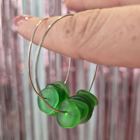 Green Seaglass Silver Hoops
