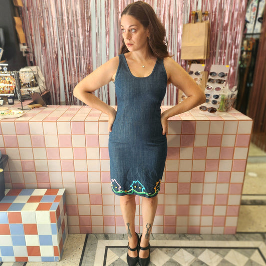 Cute Denim Dress with Houses