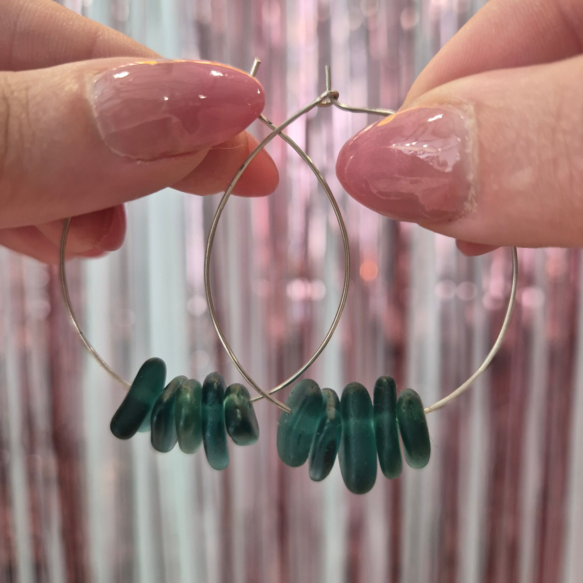Teal Seaglass Silver Hoops
